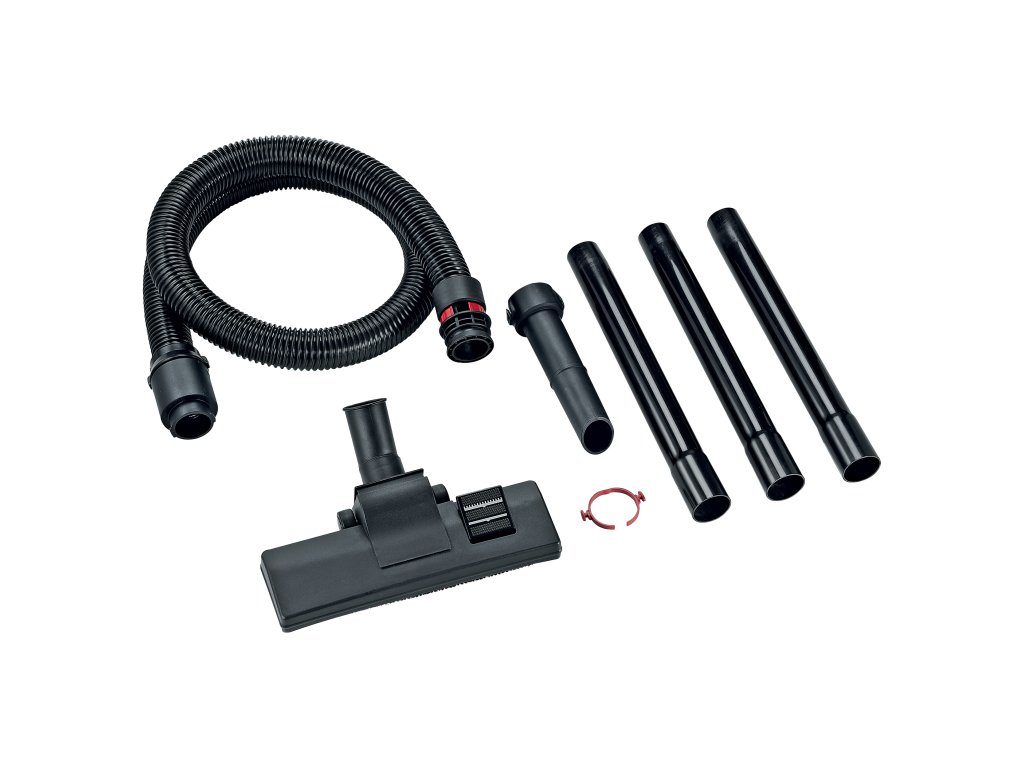 Čistiaca súprava, Skladá sa zo sacej hadice s vnútorným priemerom 32 mm x 1,5 m s bajonetovou koncovkou, závitového krúžku Clip s bočnou reguláciou tlaku vzduchu (487.171), rýchloupínacieho krúžku Clip červenej farby (406.023), plastovej predlžovacej hadice 3x360 mm, ručnej hadice K-C HT (487.198) a kombinovanej podlahovej hubice s kefou a gumovým pásom na tvrdé a mäkké podlahy. Vhodné pre VC 6 L MC.Dodatočné parametre