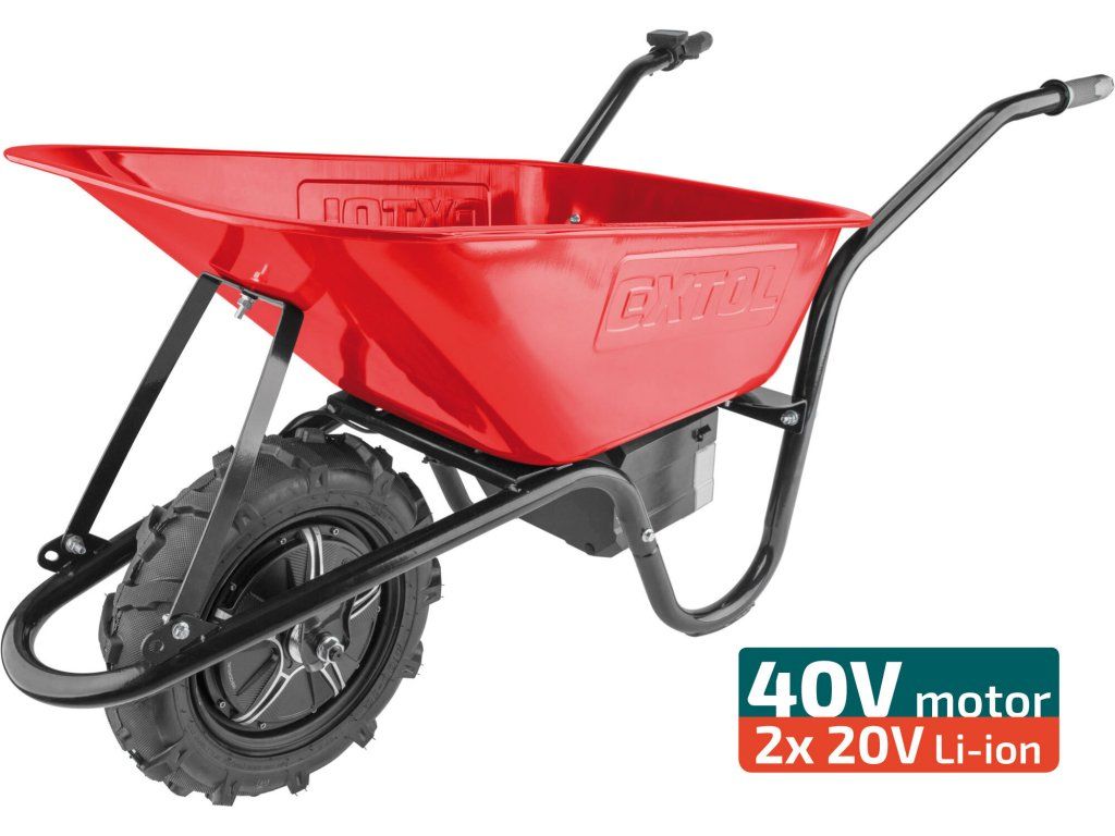 Akumulátorový fúrik s elektrickým pohonom je určený na prepravu tuhých, sypkých alebo hustých materiálov. Elektrický pohon podstatne urýchľuje prepravu a zároveň znižuje únavu počas obsluhy, čo zvyšuje produktivitu práce. Použitie Li-ion batérie výrazne znižuje hmotnosť fúrika oproti modelom, ktoré sú poháňané olovenými batériami. Na pravej rukoväti sa nachádza ovládač, kde je možné pomocou palca nastaviť okamžitú rýchlosť pohybu, voliť jazdu dopredu alebo dozadu, aktivovať brzdu, normálnu alebo Turbo rýchlosť. Pre bežnú prevádzku sa používa normálna rýchlosť, Turbo je možné použiť pri jazde do kopca, v ťažkom teréne alebo pri preprave ťažšieho nákladu. Fúrik je poháňaný najmodernejším bezuhlíkovým 40V motorom. Tento nový typ motora má vyššiu životnosť, je výkonnejší a má menšiu spotrebu elektrickej energie ako klasické motory s uhlíkovými kefami. Ak je to nutné, je možné motor kompletne vypnúť a používať fúrik len na ručný pohon. Elektrická brzda sa používa ak je potrebné zamedziť pohybu fúrika na mieste. Kolesá s hlbokou vzorkou do terénu poskytujú dobrú trakciu. Fúrik je dodávaný s kovovou korbou s objemom 80l, lisovanou z jedného kusa plechu. Pre prepravu pevného objemnejšieho nákladu (napr. krabice, polená...) je možné dokúpiť rámovú konštrukciu, ktorá sa priskrutkuje namiesto korby. Elektronika fúrika má krytie IP64, čo mu umožňuje dočasnú prácu vo vlhkom prostredí, prípadne umývanie prúdom vody, nie je ale určený na trvalú prevádzku alebo skladovanie vo vlhkom prostredí. Pre jednoduchšiu prepravu v aute je možné sklopiť rúčky, takže sa fúrik zmestí aj do menšieho auta. Zdrojom elektrickej energie sú silné Share20V akumulátory, ktoré sa predávajú samostatne. Z dôvodu vysokého odberu je nutné použiť 6Ah alebo 8Ah verziu. Výhodou použitia Share20V akumulátorov je, že keď fúrik nepoužívate, môžete ich tiež používať v našom neustále rozširujúcom sa sortimente náradia používajúceho rovnaký typ akumulátora. Vyberateľné batérie umožňujú ich ľahké nabíjanie a skladovanie v suchom a zateplenom prostredí, čo je veľmi dôležité pre ich životnosť. Batérie majú ochranu proti vybitiu pod minimálnu úroveň, pred preťažením pri nadmernom odbere prúdu, prebitím, skratom a náhlemu zvýšeniu teploty pri práci.- silný 40V/500W motor