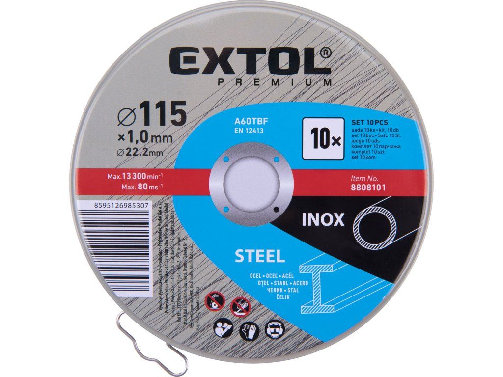 | doplňujúci parameter: | 10ks, Ø115x1,0mm, plechová krabička |