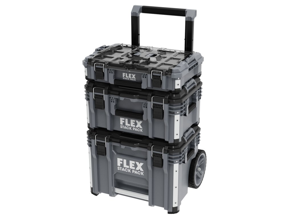 Sada prepravných kufrov 1 STACK PACK , S robustným systémom na skladovanie a prepravu STACK PACK možno náradie a príslušenstvo ľahko prepraviť na stavenisko. Boxy z nárazuvzdorného plastu s rohmi vystuženými hliníkom chránia náradie a príslušenstvo v najťažších podmienkach na stavenisku. Boxy sú vybavené odolnou kovovou západkou a prídavné rukoväte zabezpečujú flexibilnú a pohodlnú manipuláciu. Rýchloupínacie západky zabezpečujú rýchle, flexibilné a jednoduché pripojenie každého boxu, čo umožňuje konfiguráciu úložného systému podľa individuálnych potrieb. Súprava Standard pozostáva z vozíka s odnímateľnou teleskopickou rukoväťou, s robustnými kolieskami Ø 23 cm, veľkého prepravného boxu a stredného boxu s plynovými tlmičmi a veľkého organizéra s priehľadným vekom.Dodatočné parametre
