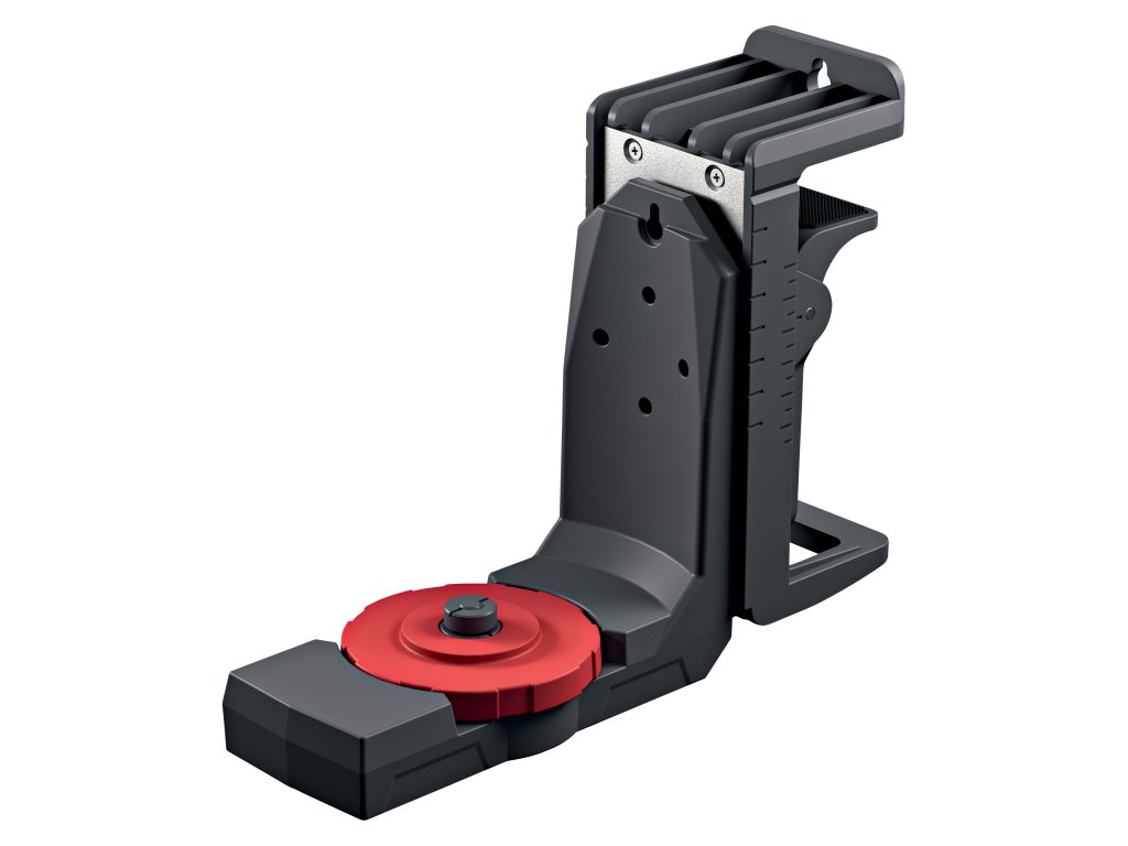 Univerzálny držiak lasera, Skladá sa z nástenného držiaka a držiaka lasera. Vybavený silnými magnetmi, perfektná vertikálna a horizontálna montáž. Rozsah upnutia v nástennom držiaku do 50 mm, jednoduché a flexibilné upevnenie na nosníky, rámy, profily atď. Presné umiestnenie lasera vďaka plynulému nastaveniu výšky a uhla. Univerzálny držiak na montáž na statív, závity 1/4" a 5/8". Vybavený gumovými podložkami na ochranu povrchu a na bezpečné skladovanie.Dodatočné parametre