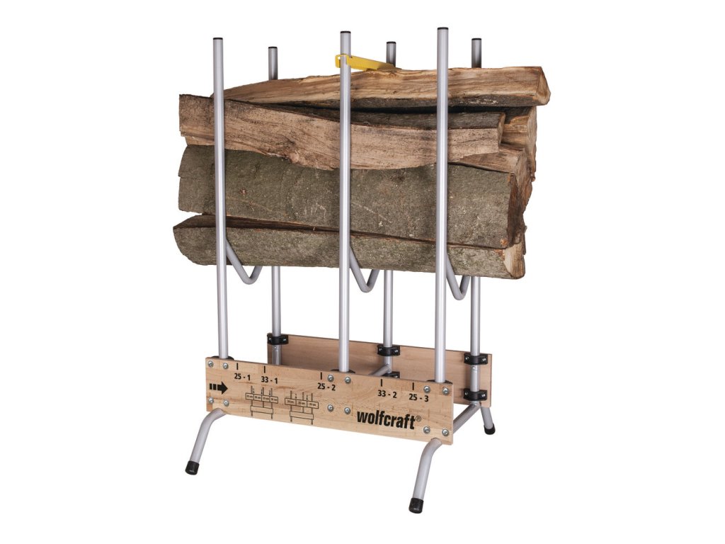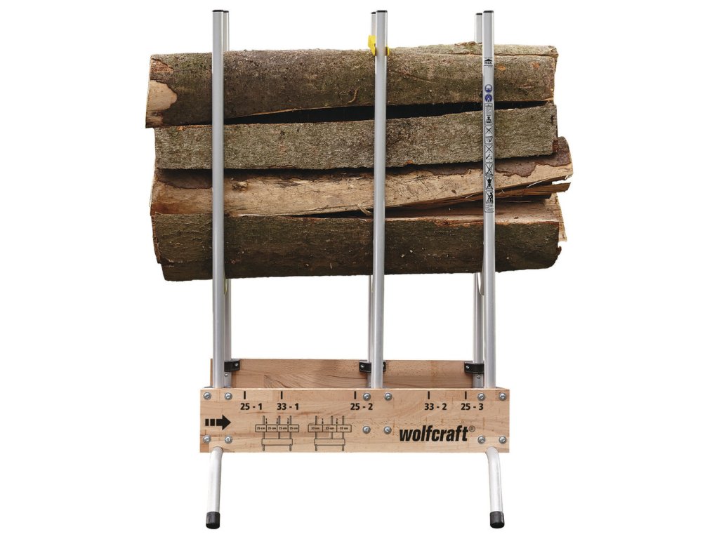 značky na řezání na 25, 50 a 75 cm (pro polena 25 cm) a 33 a 66 cm (pro polena 33 cm)