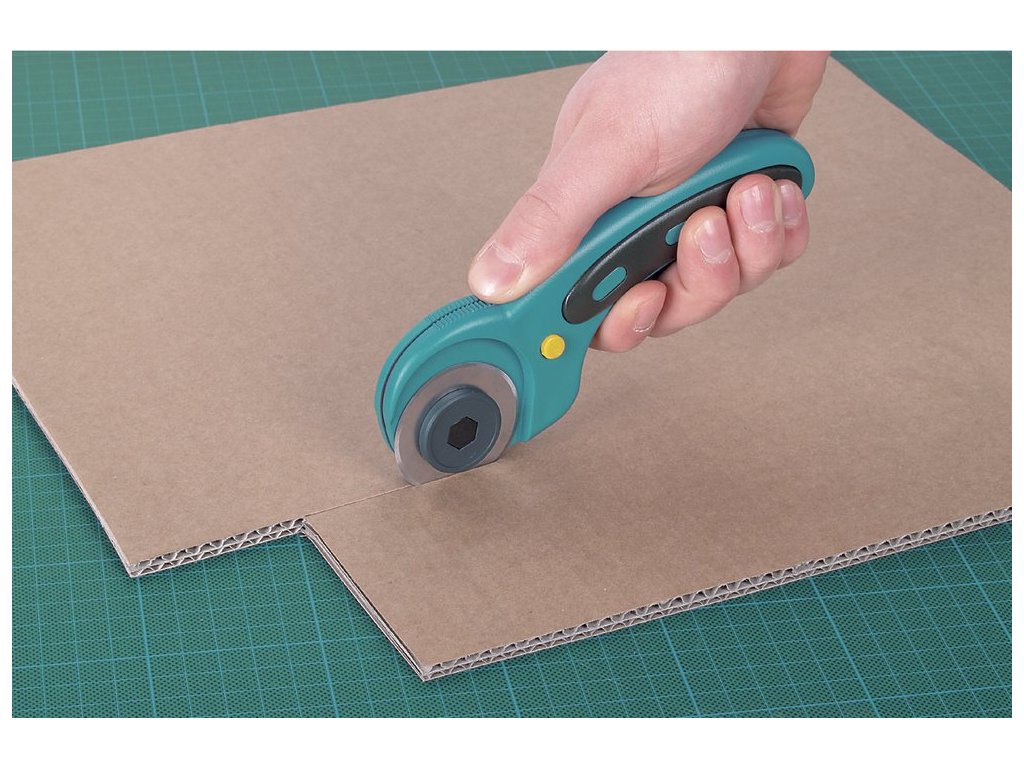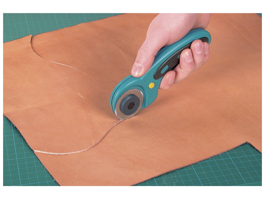 Popis produktu: Nôž s kolieskom je výkonný pomocník pri domácom šití a pre domácich majstrov. S 45 mm čepeľou môžete bez problémov rezať látky, papier a kožu a dosiahnuť presné okraje rezu. Ergonomicky tvarovaná rukoväť zabezpečuje presné vedenie pozdĺžnych a zakrivených rezov po požadovanom obryse. Pod rukoväťou sa nachádza páka na zablokovanie a zasunutie rezacieho kotúča. Prídavný uzamykací gombík nástroj bezpečne uzamkne. Otočný gombík slúži na jednoduché uvoľnenie kotúča na výmenu bez použitia náradia.