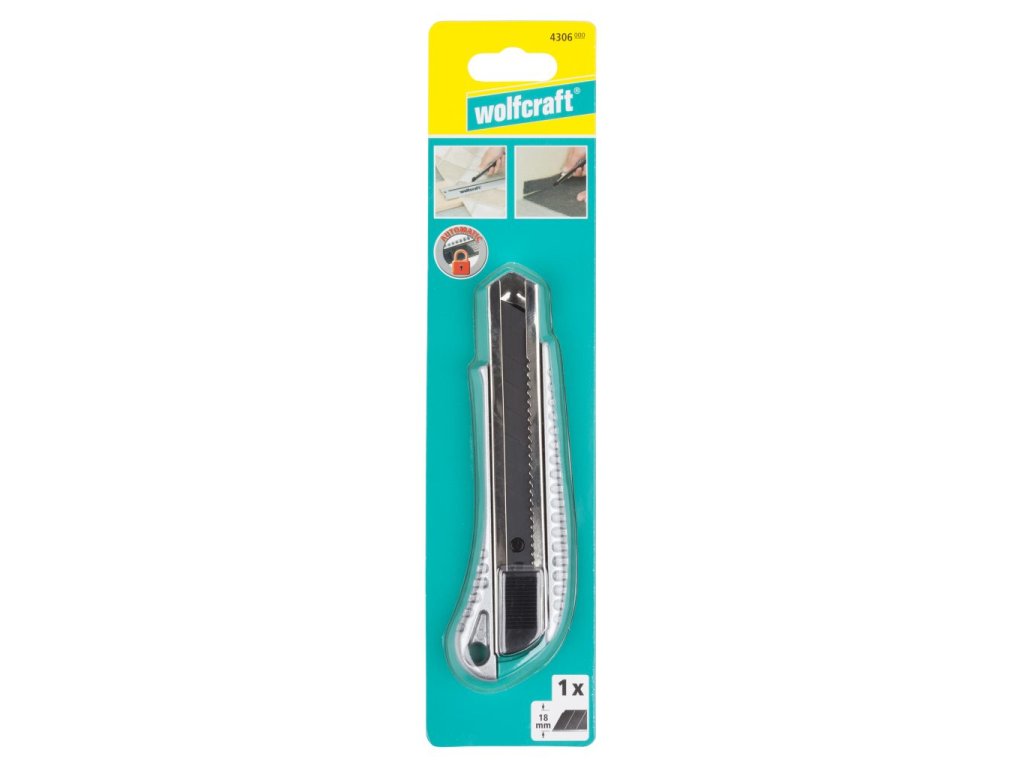 Wolfcraft Nôž odlamovací s čiernou čepeľou Profi kovový 18mm, wolfcraft 4306000