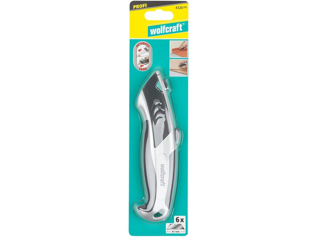 Wolfcraft Nôž s trapézovou čepeľou Profi Auto-Load so zasúvaním a zásobníkom na 6ks čepelí, wolfcraft 4320000