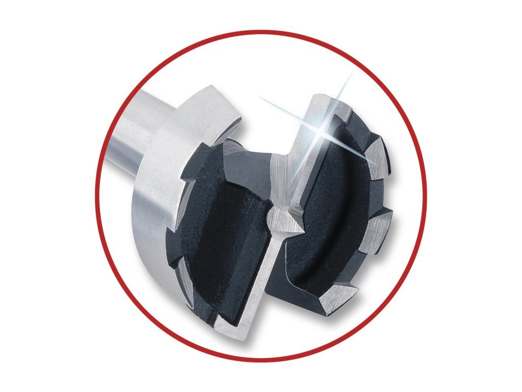 Speciální geometrie řezu brání u Forstnerova vrtáku od firmy wolfcraft nežádoucímu vyvíjení tepla při vrtání. Výsledek vrtání je přesný a bez jakýchkoli stop hoření na obrobku.