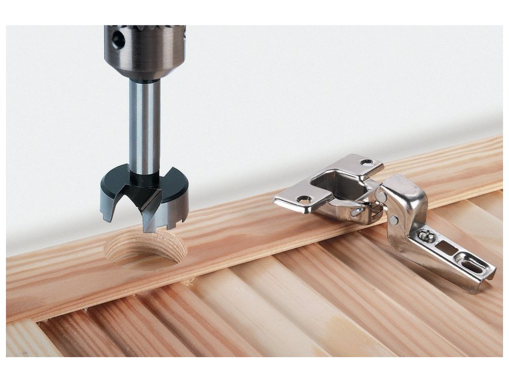 vrtání okrajových otvorů ve všech měkkých dřevech a dřevotřískových deskách s plastovou vrstvou
