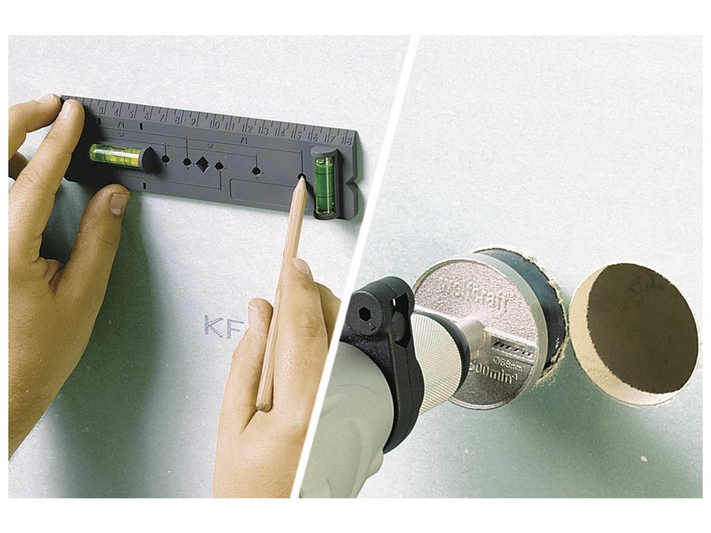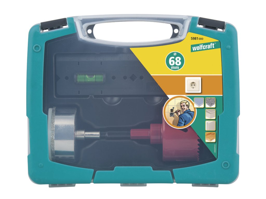 Wolfcraft Sada vrtacích koruniek ø 68mm pre elektrikárske krabičky + šablóna, wolfcraft 5981000